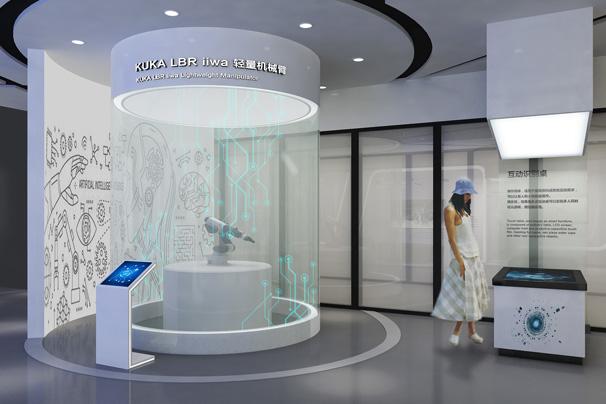 “企業(yè)數(shù)字化”、“騰飛未來(lái)”等板塊,展廳主要通過(guò)搭建多個(gè)場(chǎng)景還原訊飛產(chǎn)品在現(xiàn)代生產(chǎn)生活中的應(yīng)用,同時(shí)通過(guò)互動(dòng)觸摸屏、物體識(shí)別桌、機(jī)械臂、VR等創(chuàng)意性展項(xiàng),將訊飛企業(yè)理念、產(chǎn)品核心賣點(diǎn)與展項(xiàng)及場(chǎng)景相融合,智能化的展項(xiàng)與科技風(fēng)的空間風(fēng)格既凸顯了科大訊飛企業(yè)智能化的特點(diǎn),同時(shí)也助力展示企業(yè)的核心優(yōu)勢(shì)與價(jià)值理念。